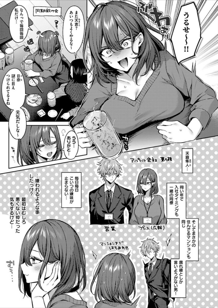 アパレル会社に勤めている月森日奈は、同期でイヤな奴・天倉隼人のチクチク言葉に日々悶々としていた!ある日、会社の飲み会で珍しく酔い潰れている天倉を自宅まで送り届けることになった日奈。しかし無事ベッドに横たわらせた途端、天倉が超甘々な態度を取ってきて―!?あまりのギャップに…