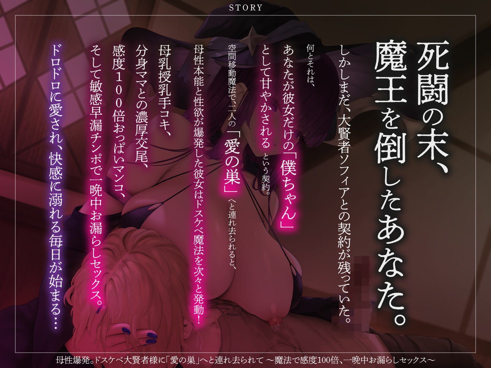 母性爆発。ドスケベ大賢者様に「愛の巣」へと連れ去られて 〜魔法で感度100倍、一晩中お漏らしセックス〜(KU100マイク収録作品) あらすじ